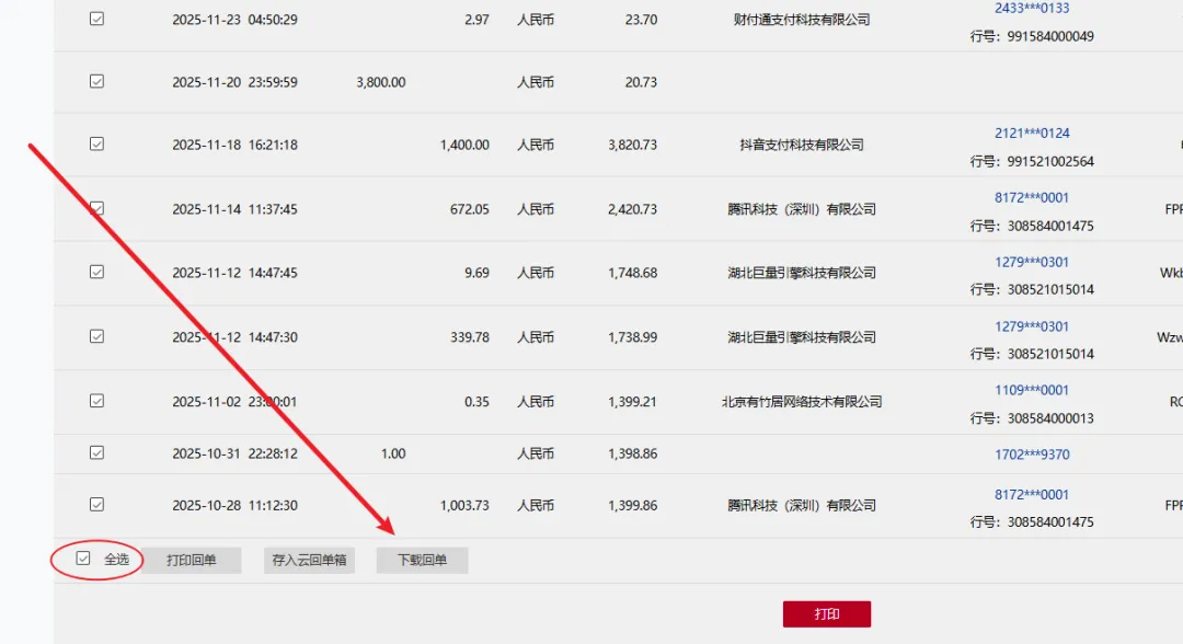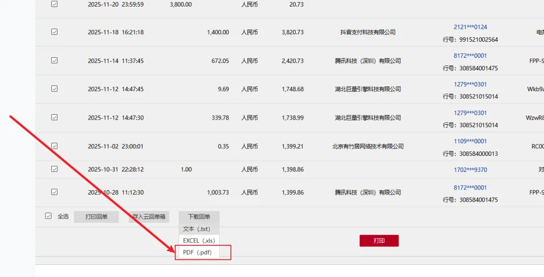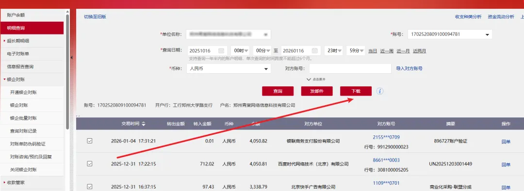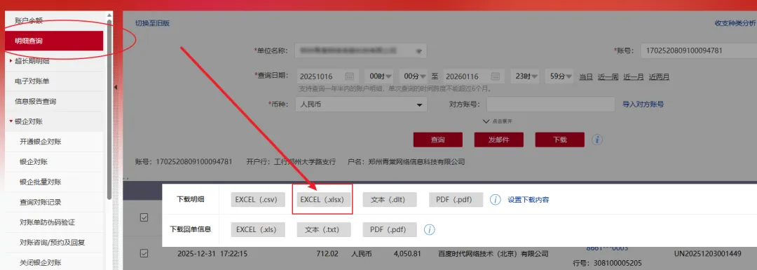 工商银行导出交易明细(Excel表格) 和电子回单(PDF文件)教程和电子对账单