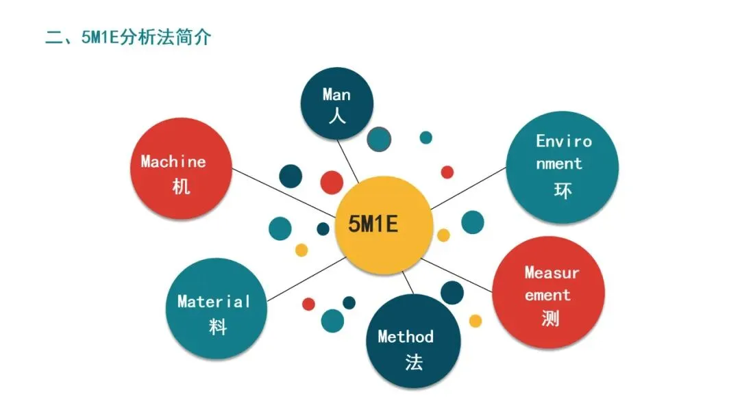 5M1E是六个影响产品质量和生产过程稳定性的关键因素的英文首字母缩写。它起源于制造业的质量管理,但现在被广泛应用于各行各业的问题分析和流程优化中。