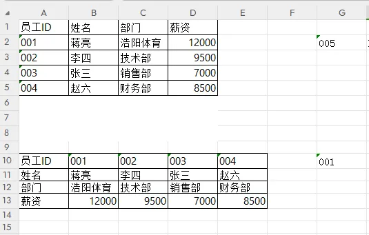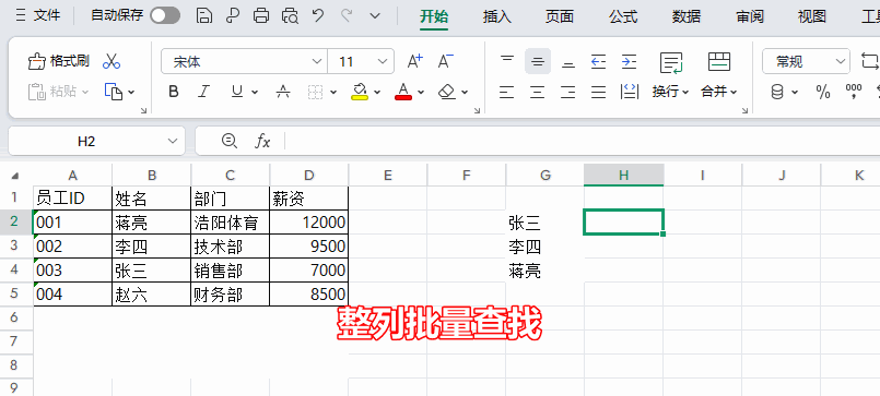 整列查找:要查找多位员工的薪资,可将查找值设为包含多个姓名的区域,返回数组设为薪资列