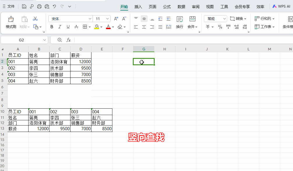 横向竖向查找演示: