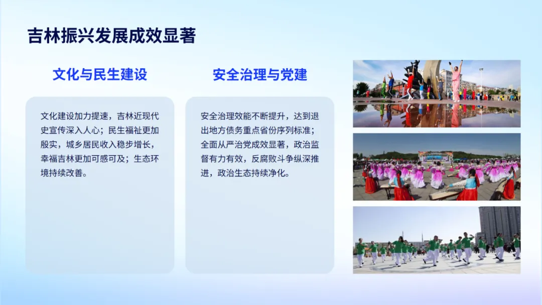 绿色与安全:协同推进生态环境保护和绿色低碳发展;贯彻总体国家安全观,建设更高水平平安吉林。
