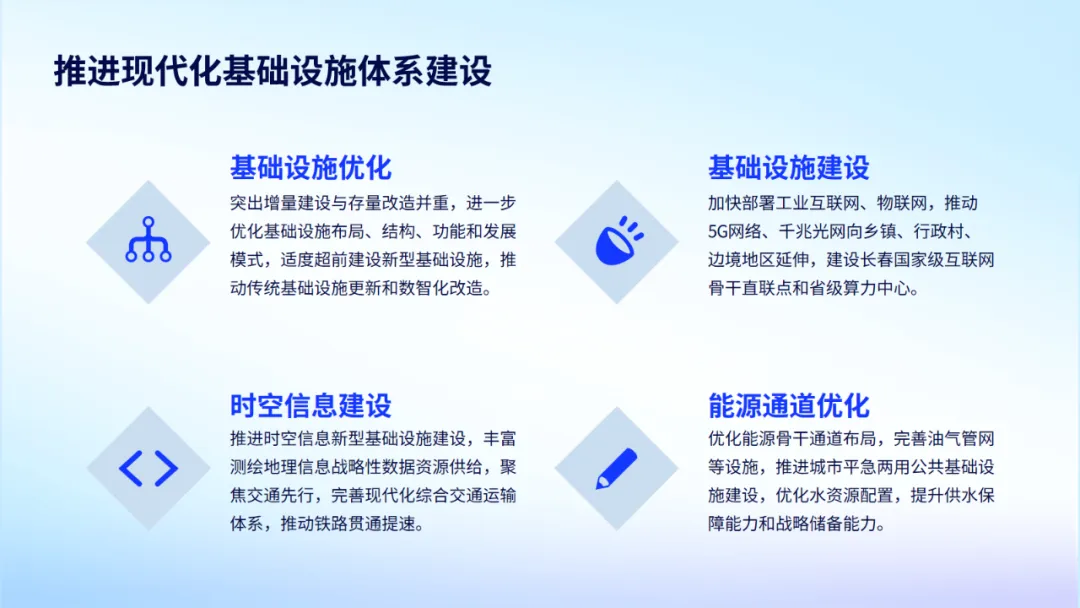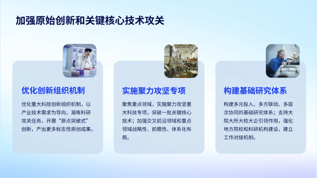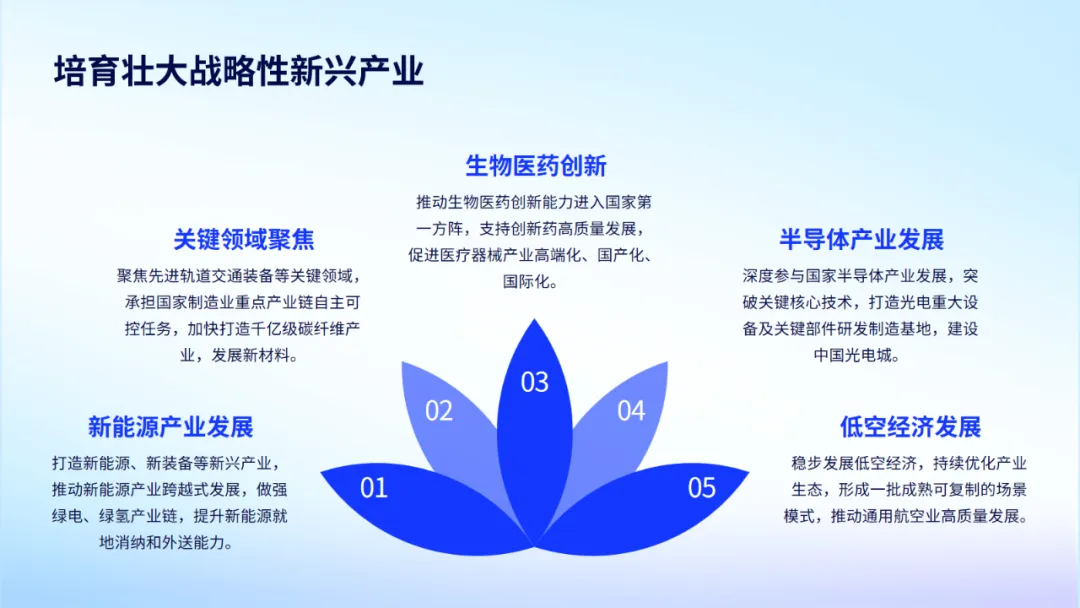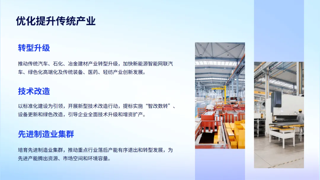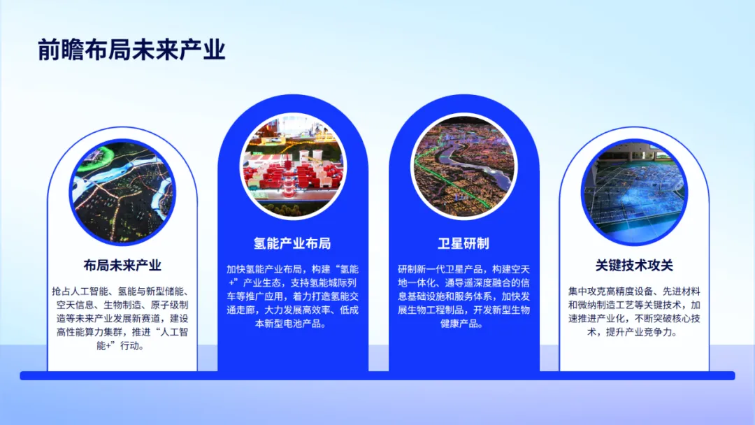 产业发展:推动传统产业(汽车、石化等)向新能源智能网联汽车、“减油增化提质”等方向转型;培育壮大新能源、新装备、新材料、新医药、新一代光电信息、低空经济等新兴产业;前瞻布局人工智能、氢能与新型储能、空天信息、生物制造等未来产业。