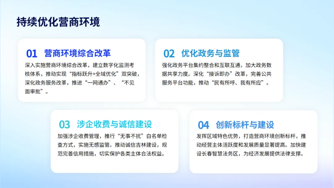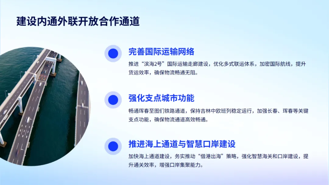 改革开放:以经济体制改革为牵引,激发经营主体活力,持续优化营商环境,主动融入全国统一大市场,推动更高水平开放,打造我国向北开放重要窗口。