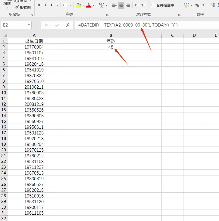 TEXT(A2,"0000-00-00"):将 8 位数字格式化为