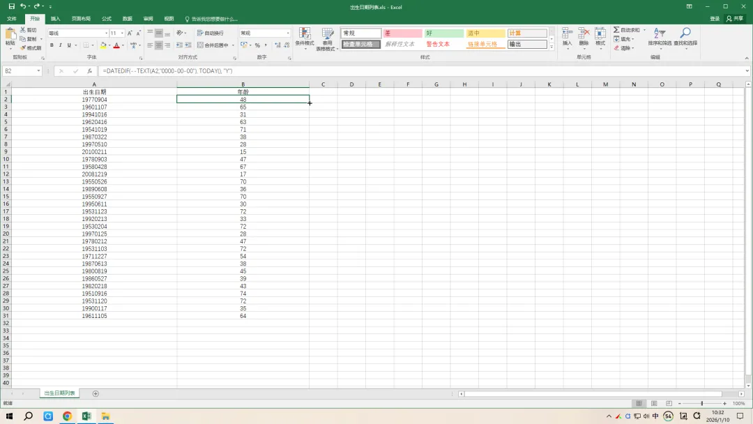 TODAY() 函数:返回当前系统日期(动态更新,每次打开 Excel 都会刷新为当日日期);