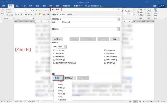 按下“Ctrl+H”即可快速启用“查找与替换”对话框,输入“查找内容”和“替换内容”,点击“全部替换”即可。此外,在“更多”-“格式”中,还能调整字体、段落、图文框等内容。