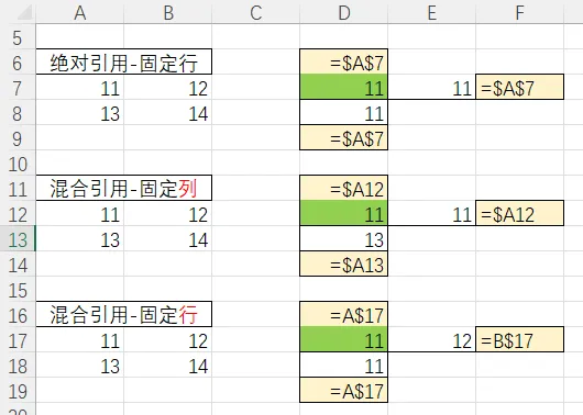 绝对引用(添加$号)