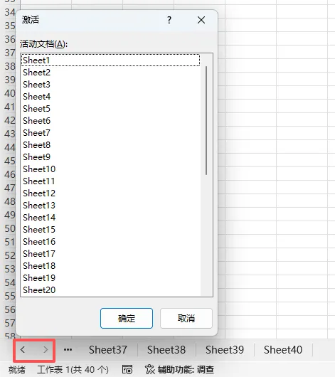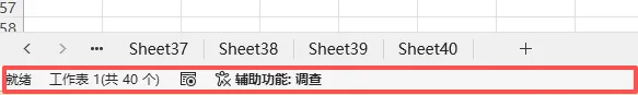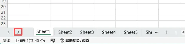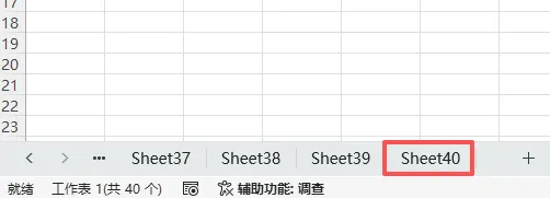 假如说我有40个工作表,我要打开Sheet40,那么我只需要按住Ctrl,然后点击➡️,Sheet的滚动轴就会直接跳转到最后,如下图所示。同理应用于跳回Sheet1。