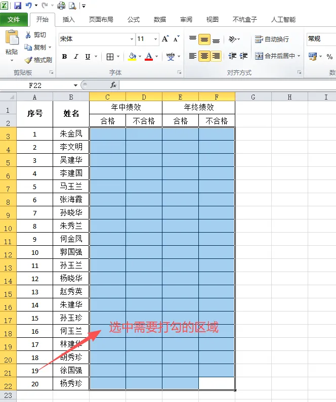 1、选中需要打勾的区域。