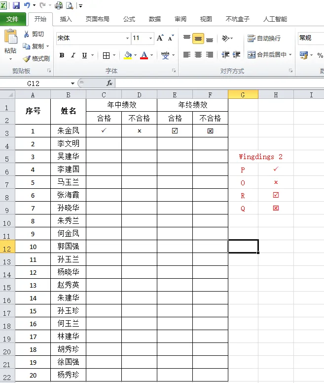 Excel快速打勾和打叉