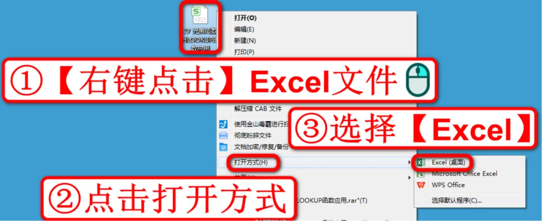 首先,一起打开前面下载的素材《27 兄弟函数HLOOKUP函数应用》,鼠标右键点击Excel文件,点击打开方式,选择Excel,如下图:???温馨提示:本课程的学习操作统一使用Office2016,为了保证和小编相同的学习效果,请你也使用Office2016学习哦~如果没有相应的安装包,可以联系小编免费获得哦~