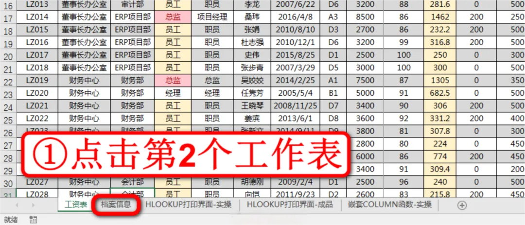 虽然VLOOKUP函数是很高频的函数,但是也有它解决不了的难题,现在我们来边学习边操作今天的案例,点击左下角第2个工作表档案信息,如下图: