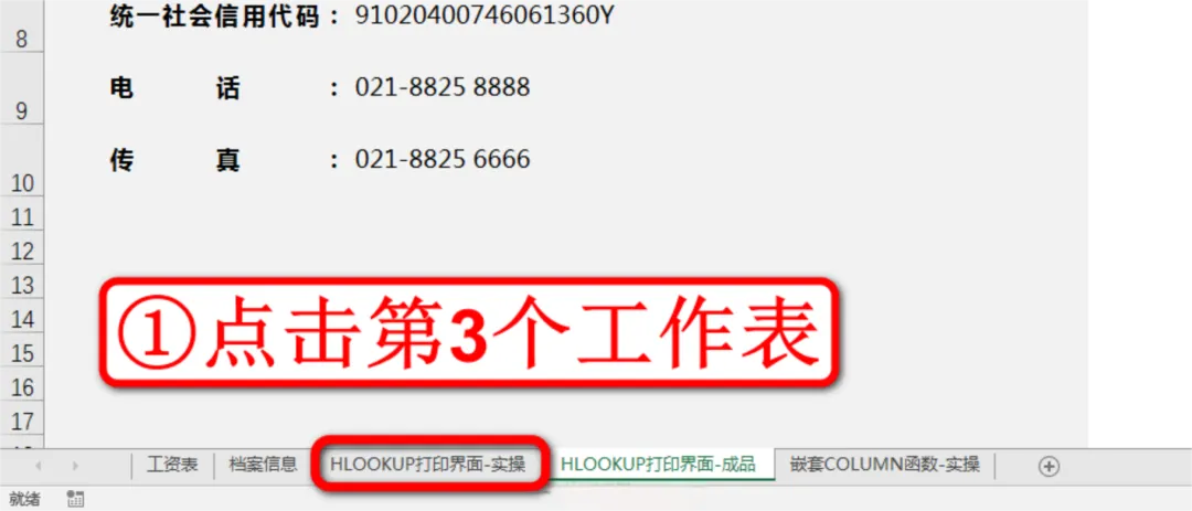 现在我们要根据这个档案信息表来制作开票资料的打印界面,点击左下角第4个工作表HLOOKUP打印界面-成品,如下图: