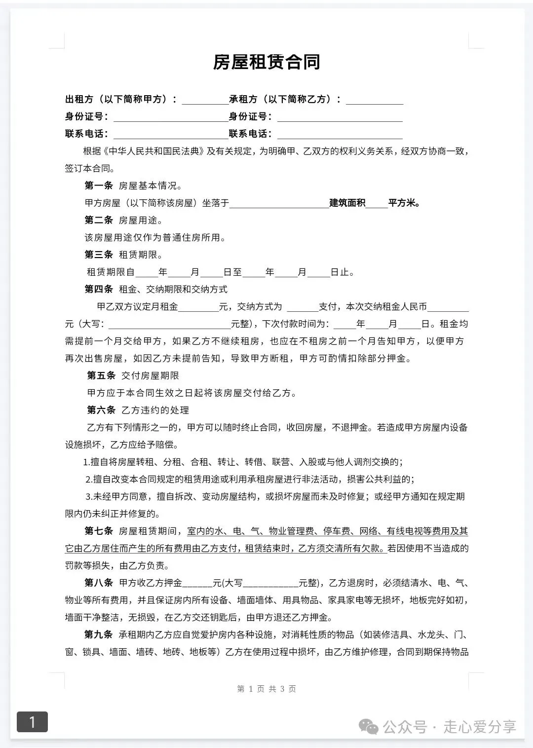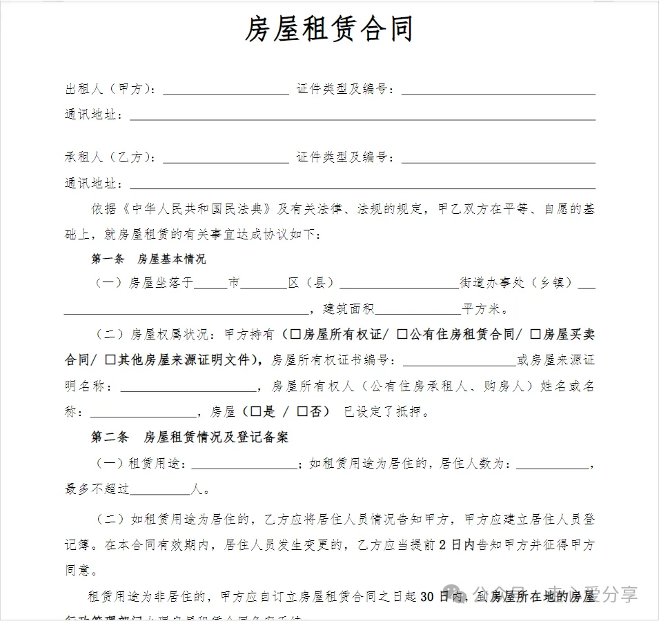 回复关键词“房屋租赁合同”领取!
