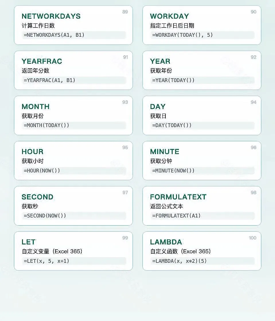 新手必学!超实用100个Excel函数,精心整理!