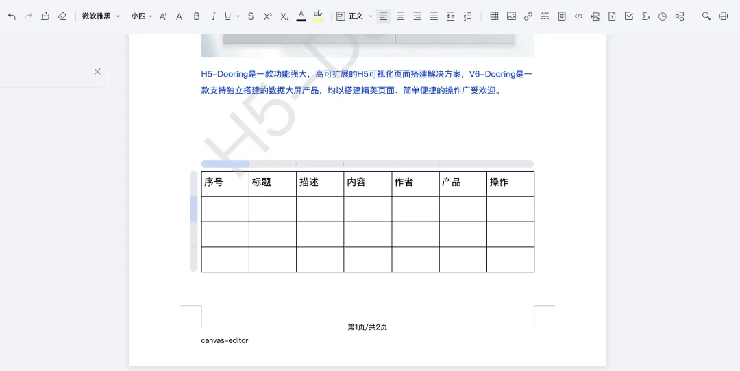 我先展示一下我本地使用 canvas-editor 开发的编辑器效果: