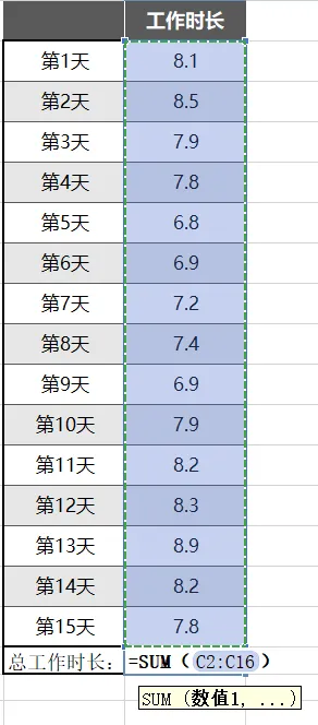 例3:SUM(C2:C16)结果为将C2:C16 单元格的