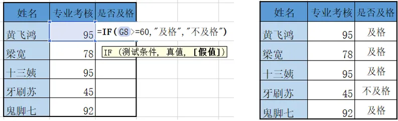 作用:当条件为TRUE(真)时,得到结果1,否则得到结果2.
