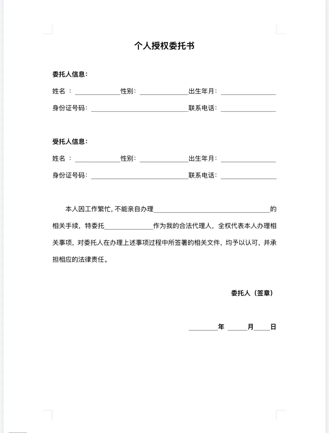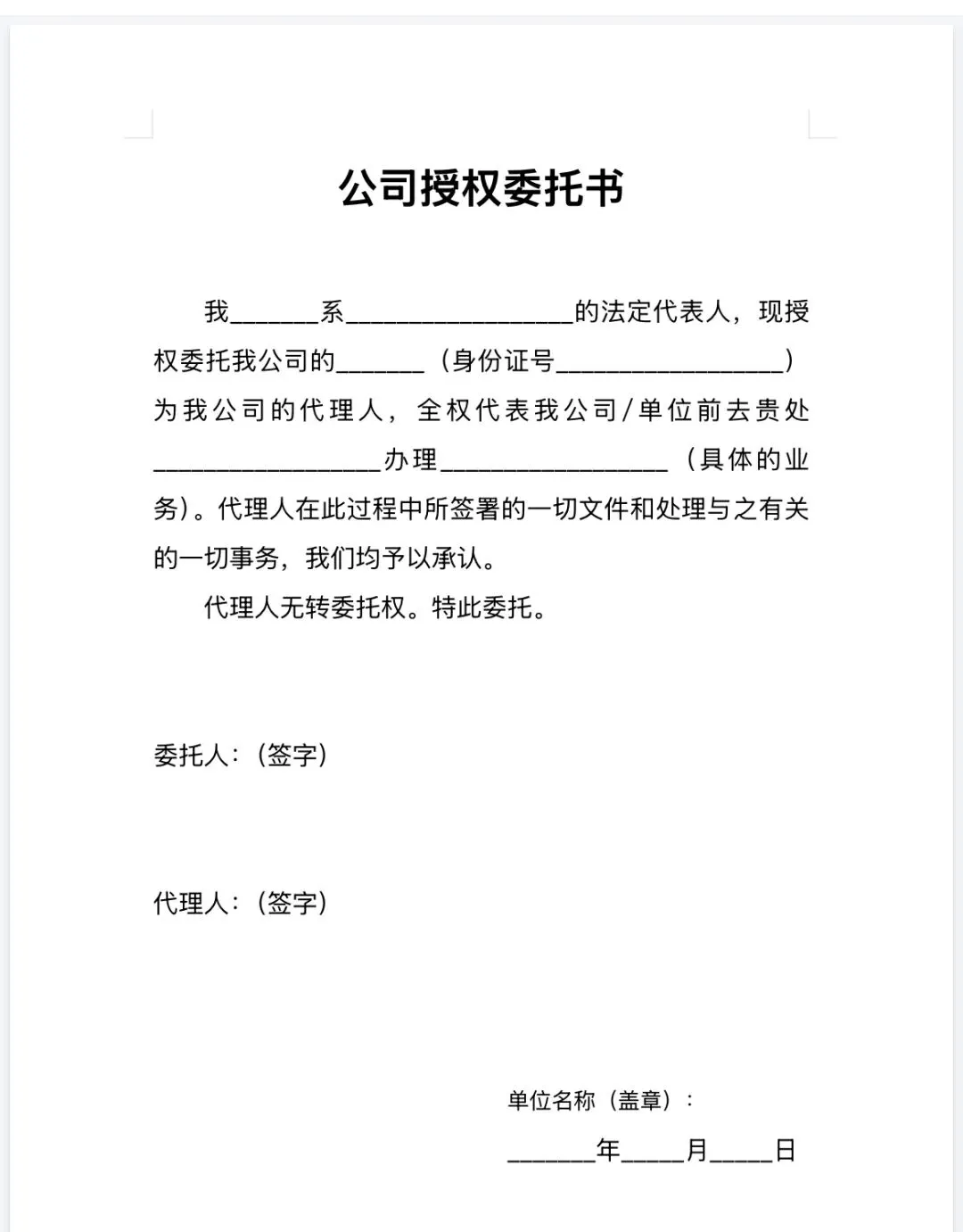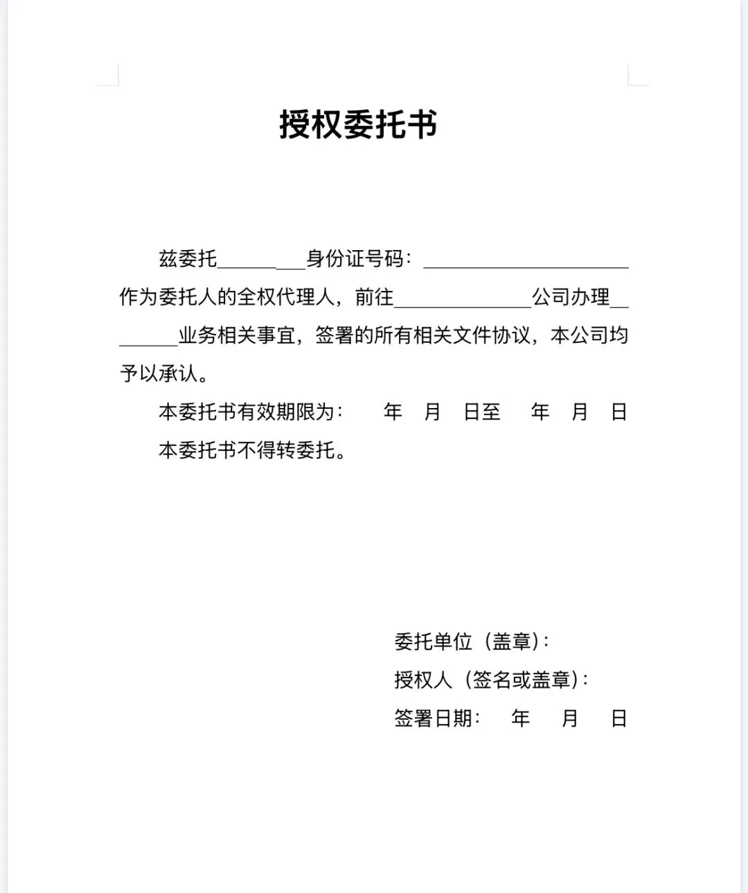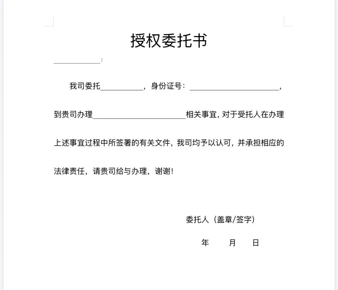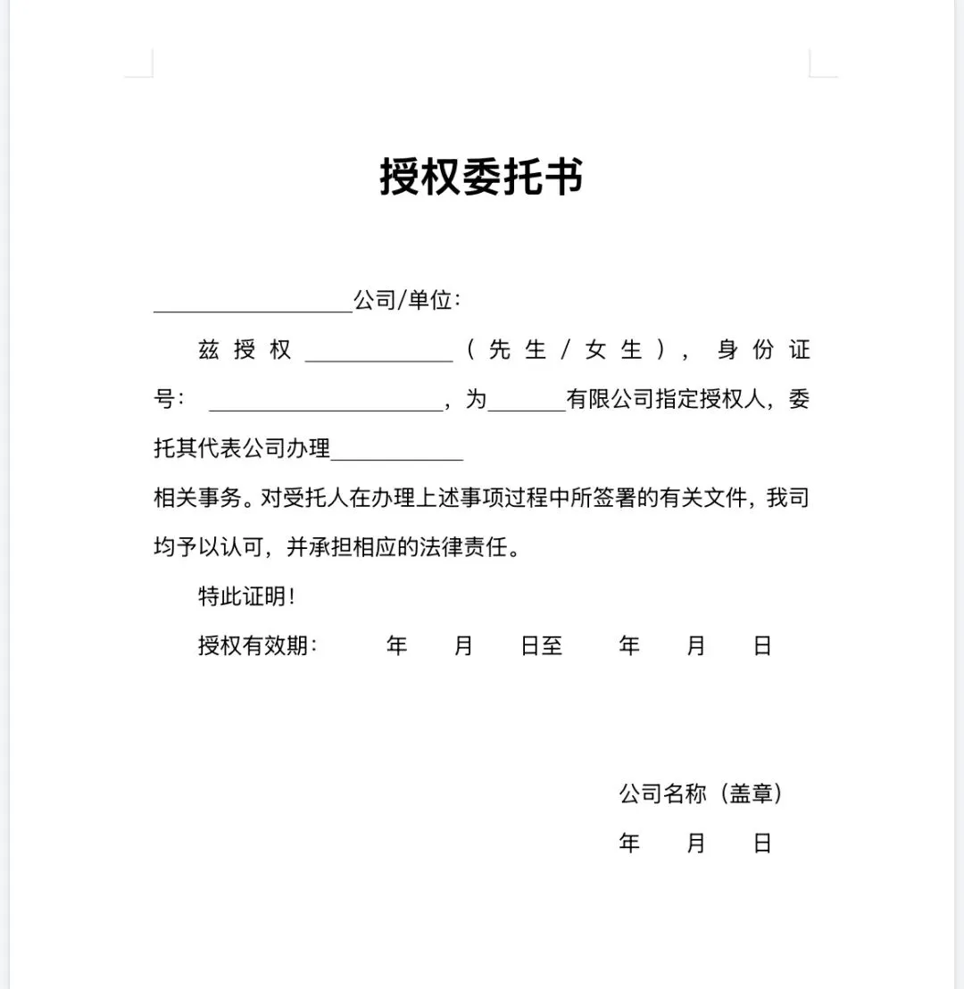 >个人 | 公司授权委托书模板(word电子版)!