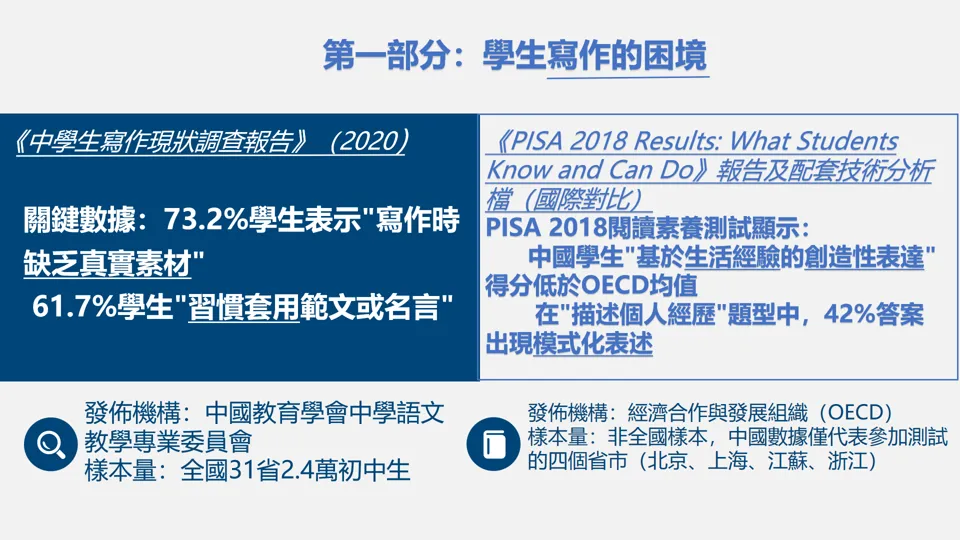 接上篇《讲座PPT2及3|课题研究及写作教学法之PPT2》。这次是PPT3(依旧是部分),写作教学讲座的相关内容。这是一次全澳公开课的配套讲座。相关背景,直接看一份工作总结的相关表述(含前面PPT2讲座的。几次PPT内容可相互对应,以明确我教育教学理念的连贯性和一致性):