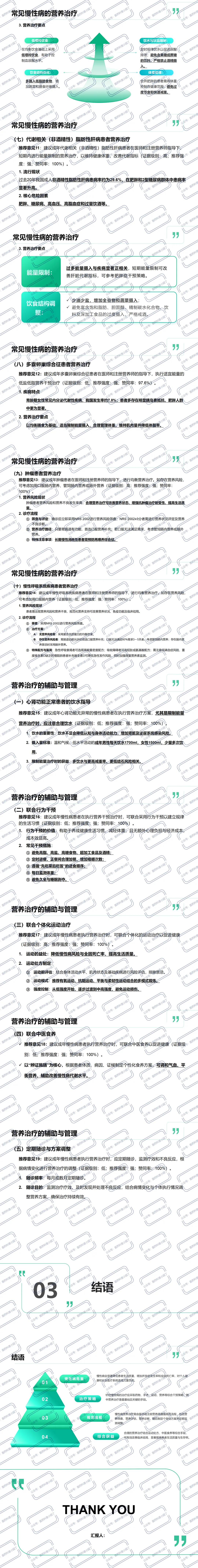 - 启动时机:慢性病一经确诊,应由医师或注册营养师进行营养风险筛查、营养状况评定和营养不良诊断,以明确患者的疾病状况和营养状况。