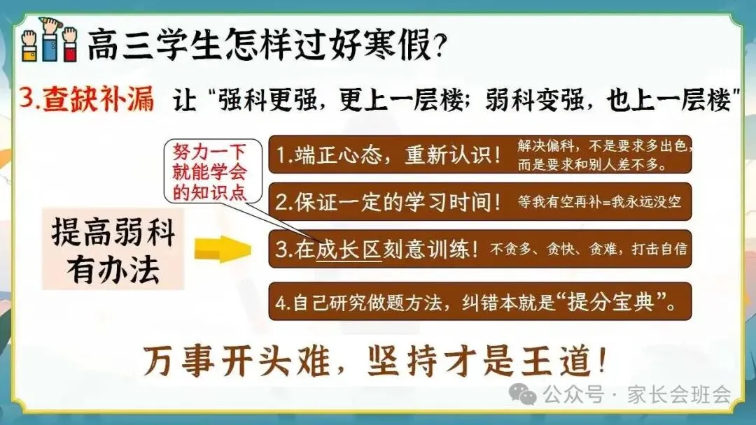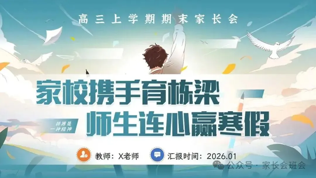 高三上期末家长会ppt:家校携手育栋梁,师生连心赢寒假。