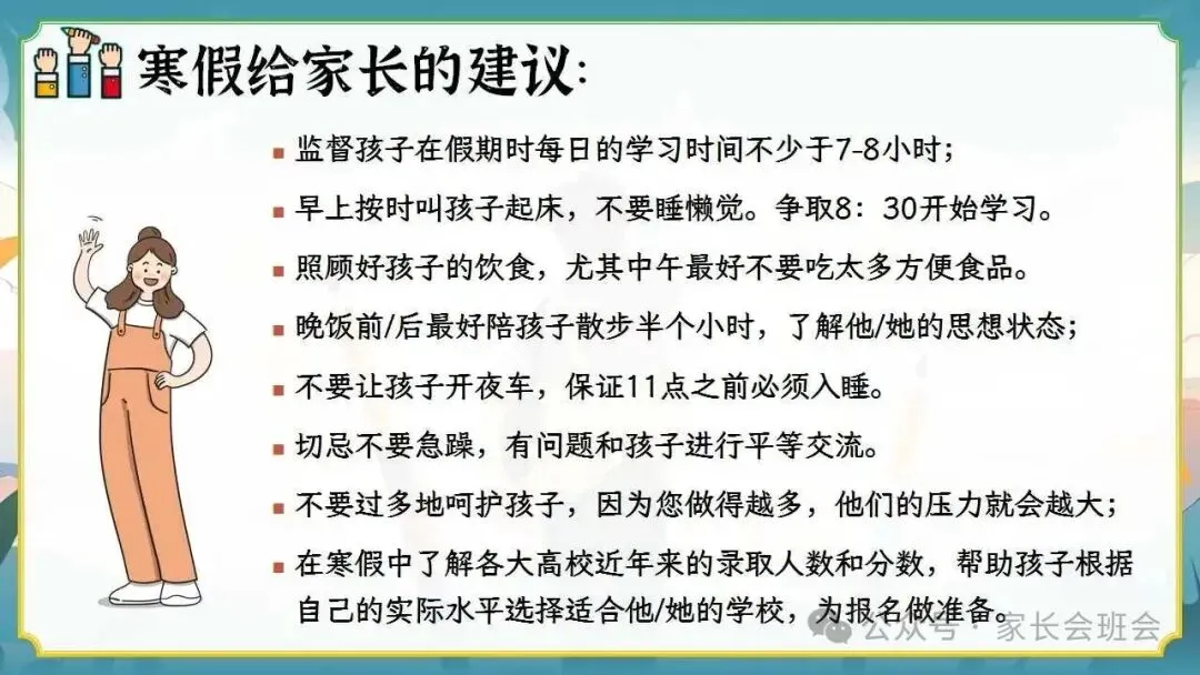 高三上期末家长会ppt:家校携手育栋梁,师生连心赢寒假.(含发言稿)