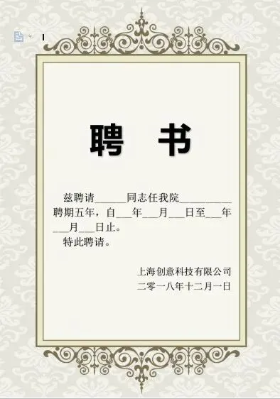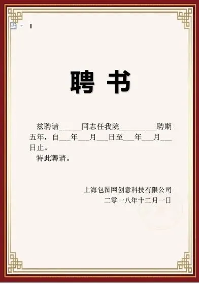 聘书任命书