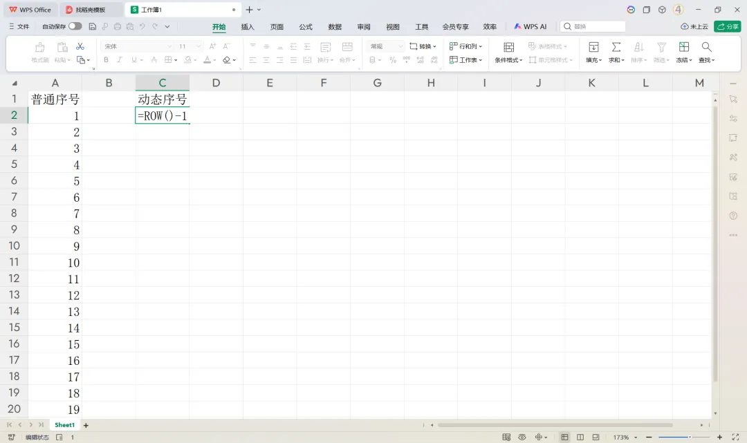 输入“=ROW()-1” (-1是因为动态序号这个标题占一行)