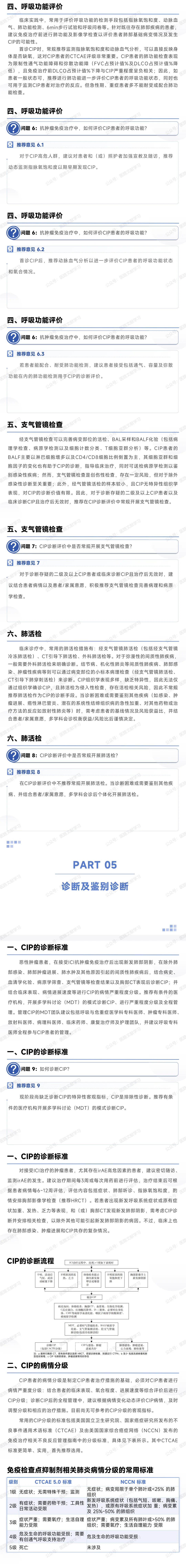 对于诊断存疑的二级及以上 CIP 患者或临床诊断 CIP 且治疗后无效时,建议结合患者病情以及患者 / 家属意愿,积极推荐支气管镜检查完善病理和病原学检查。