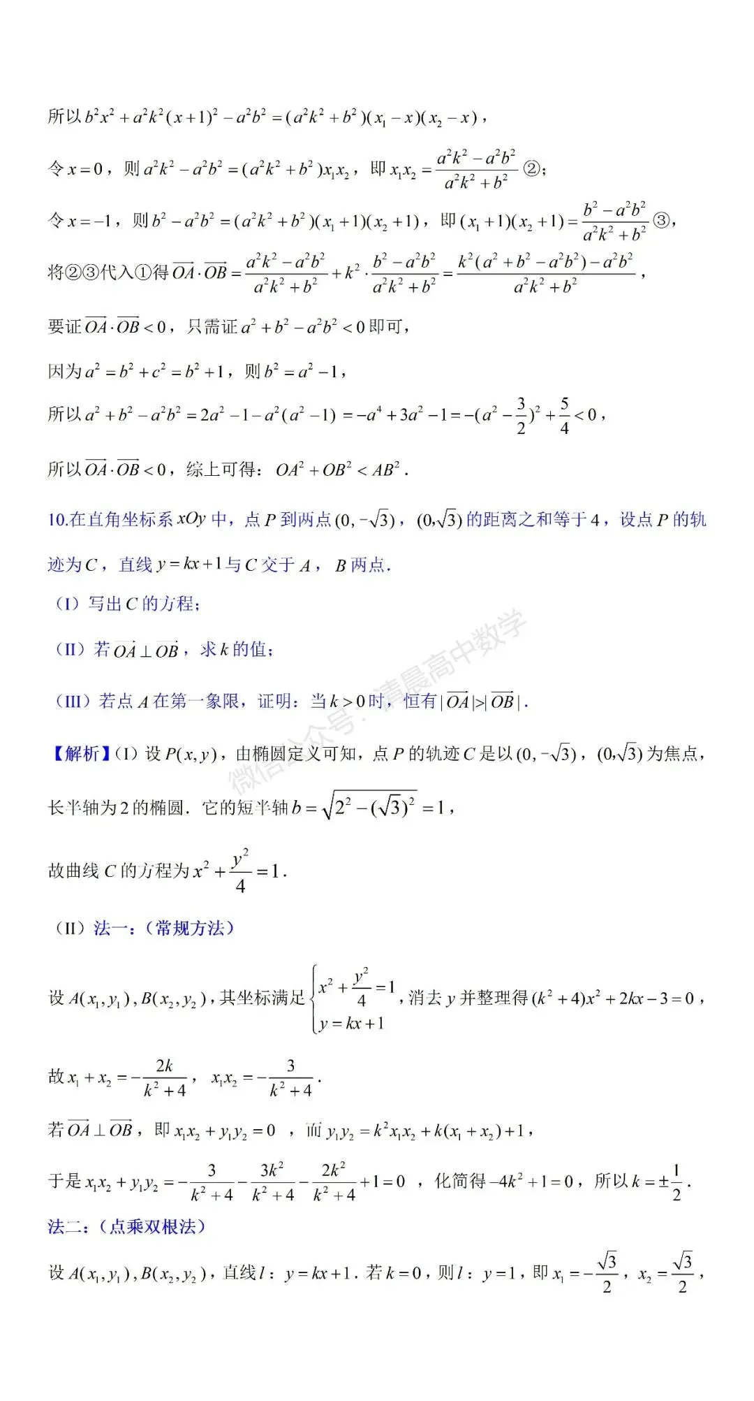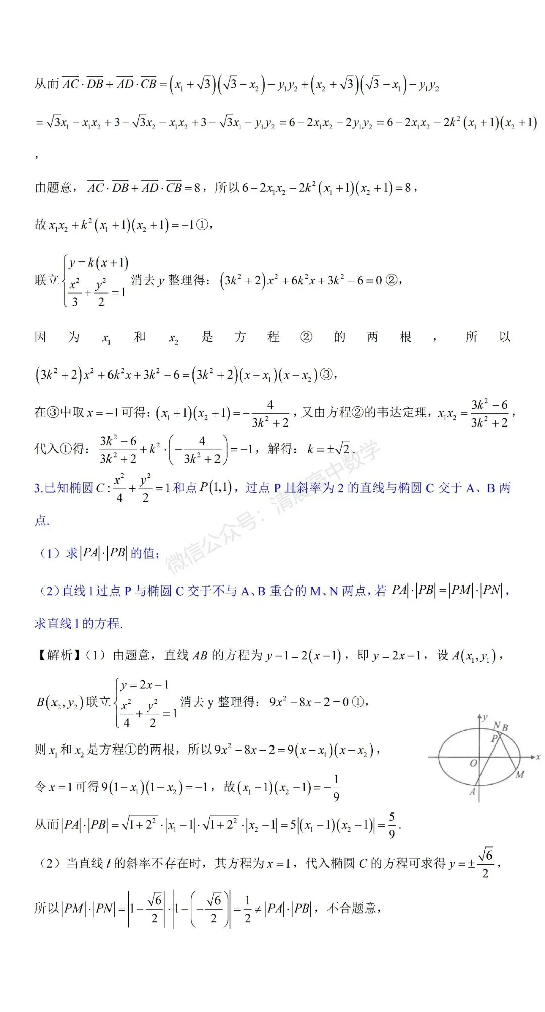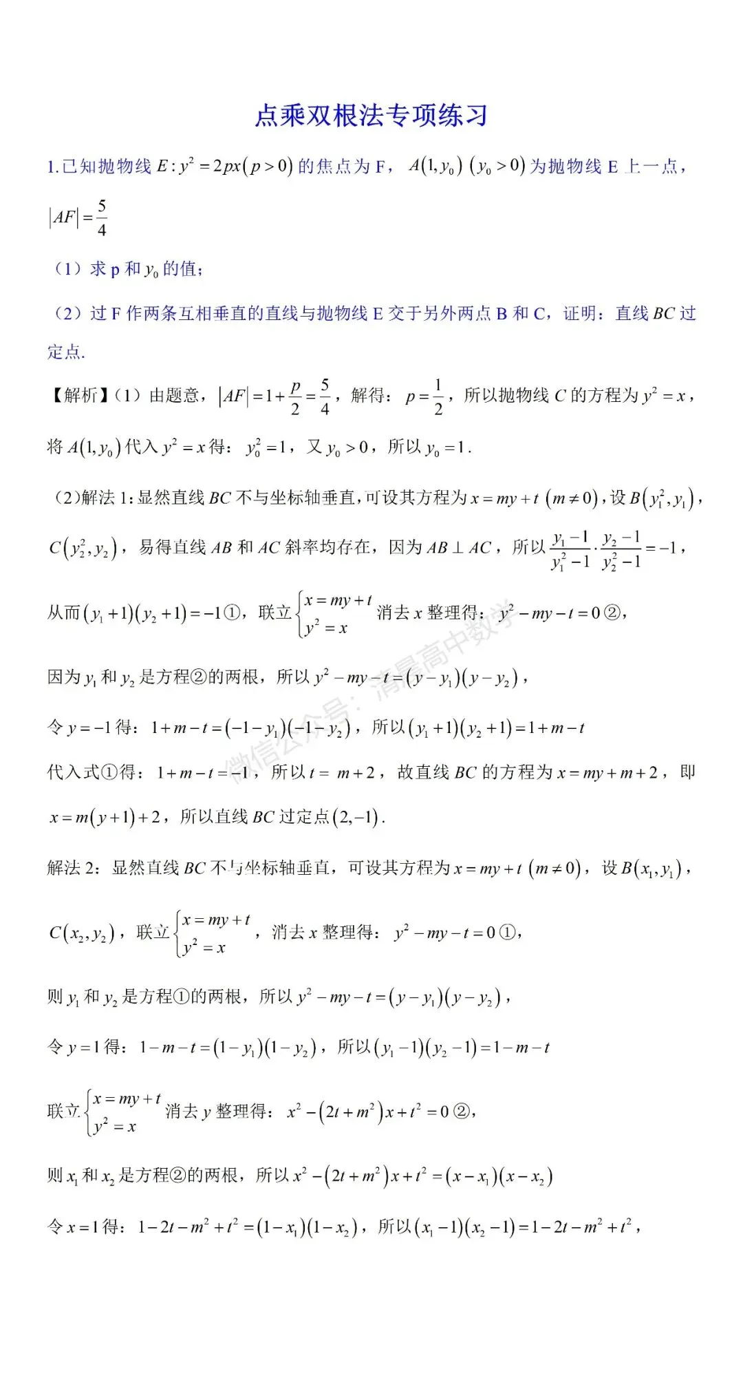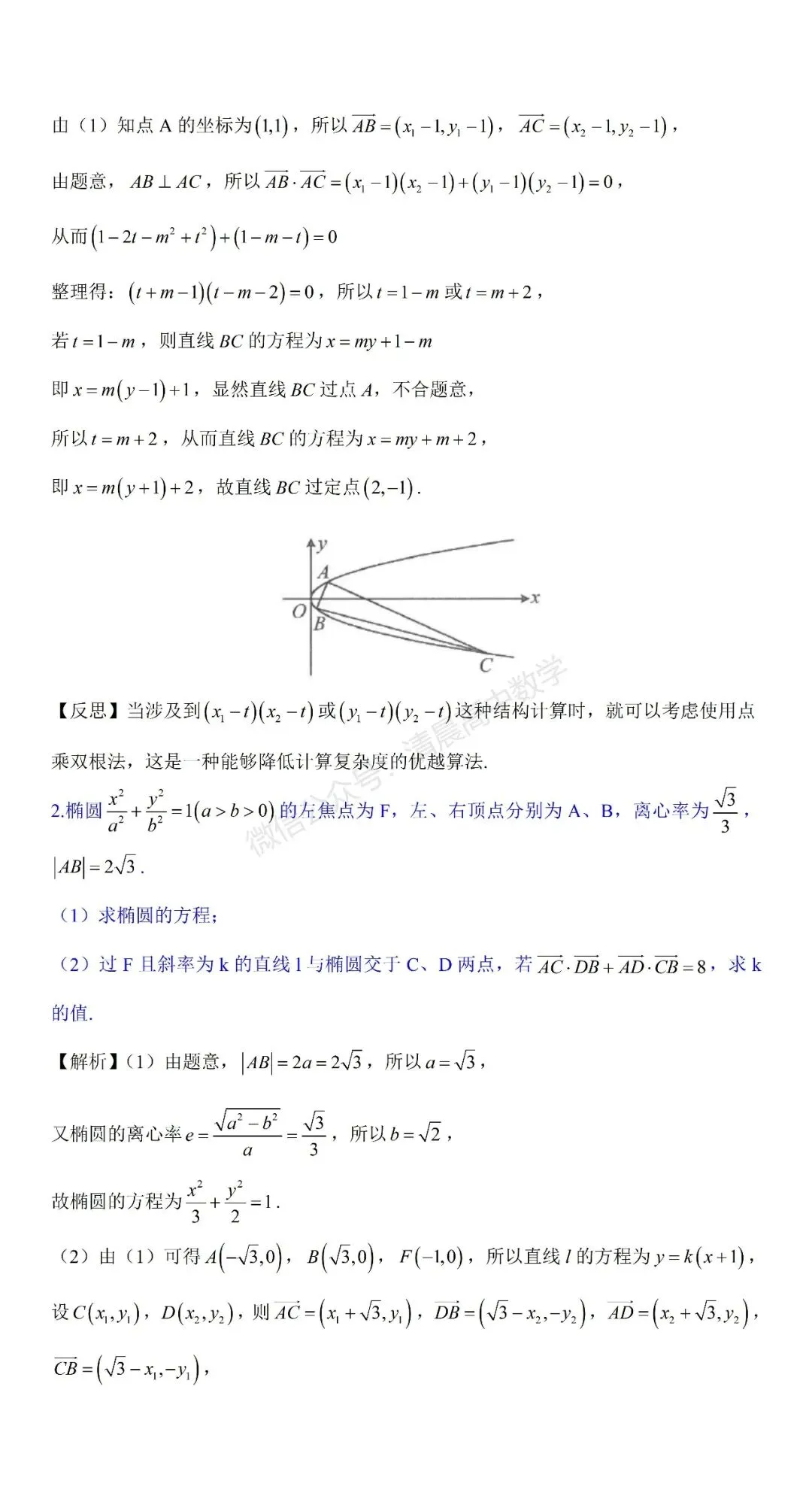 昨天介绍了关于点乘双根法圆锥曲线点乘双根法解题模板
