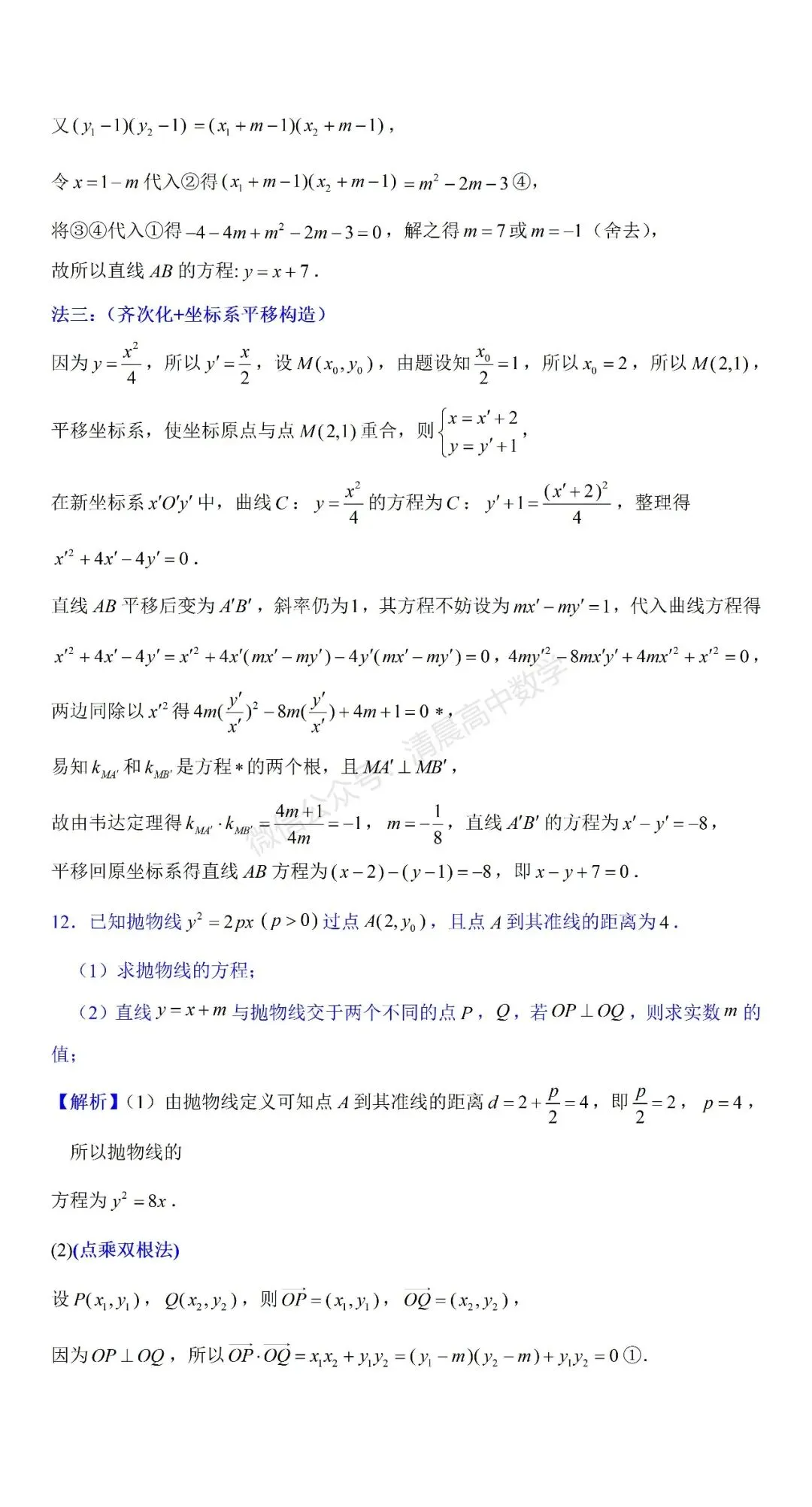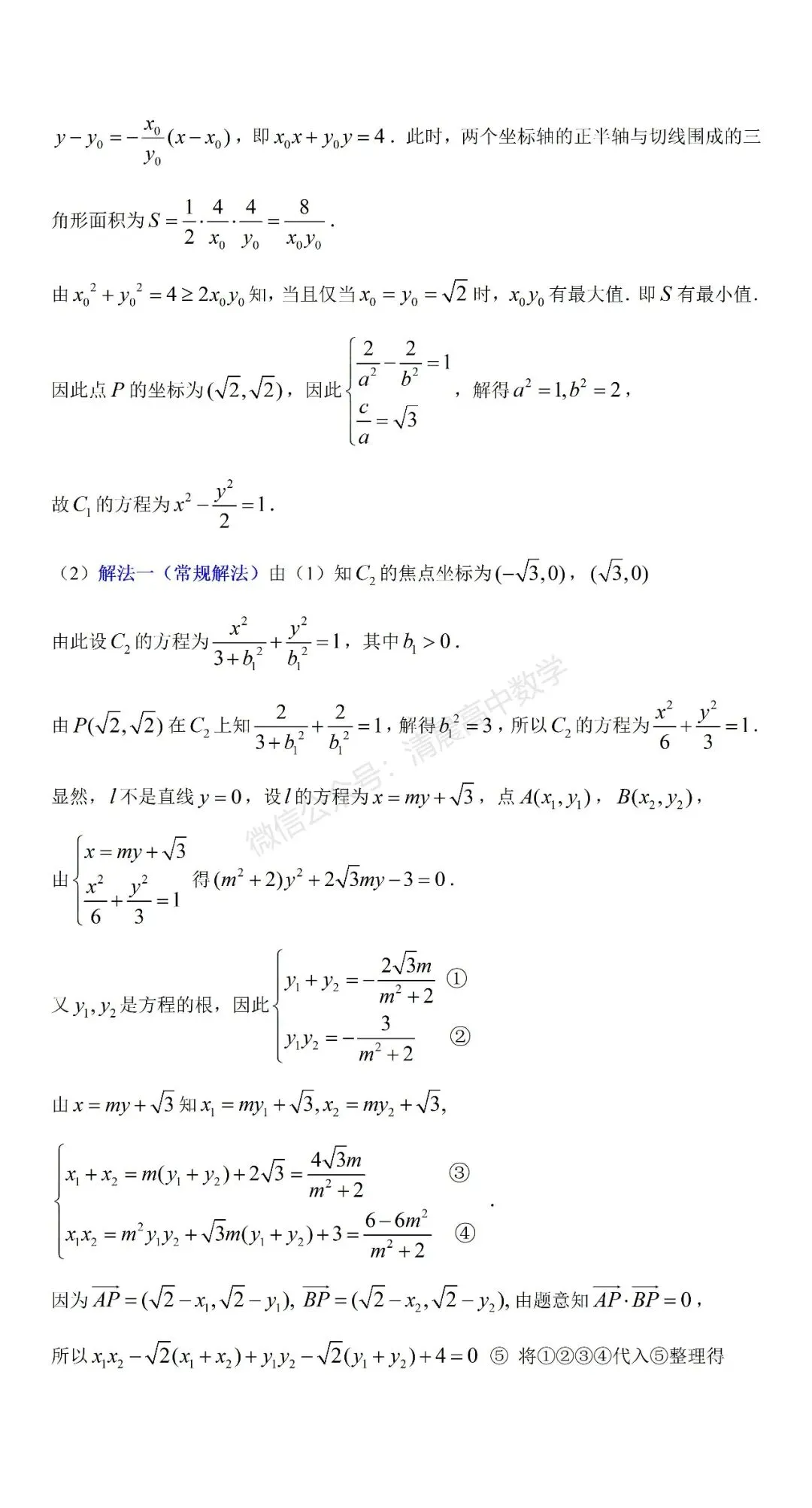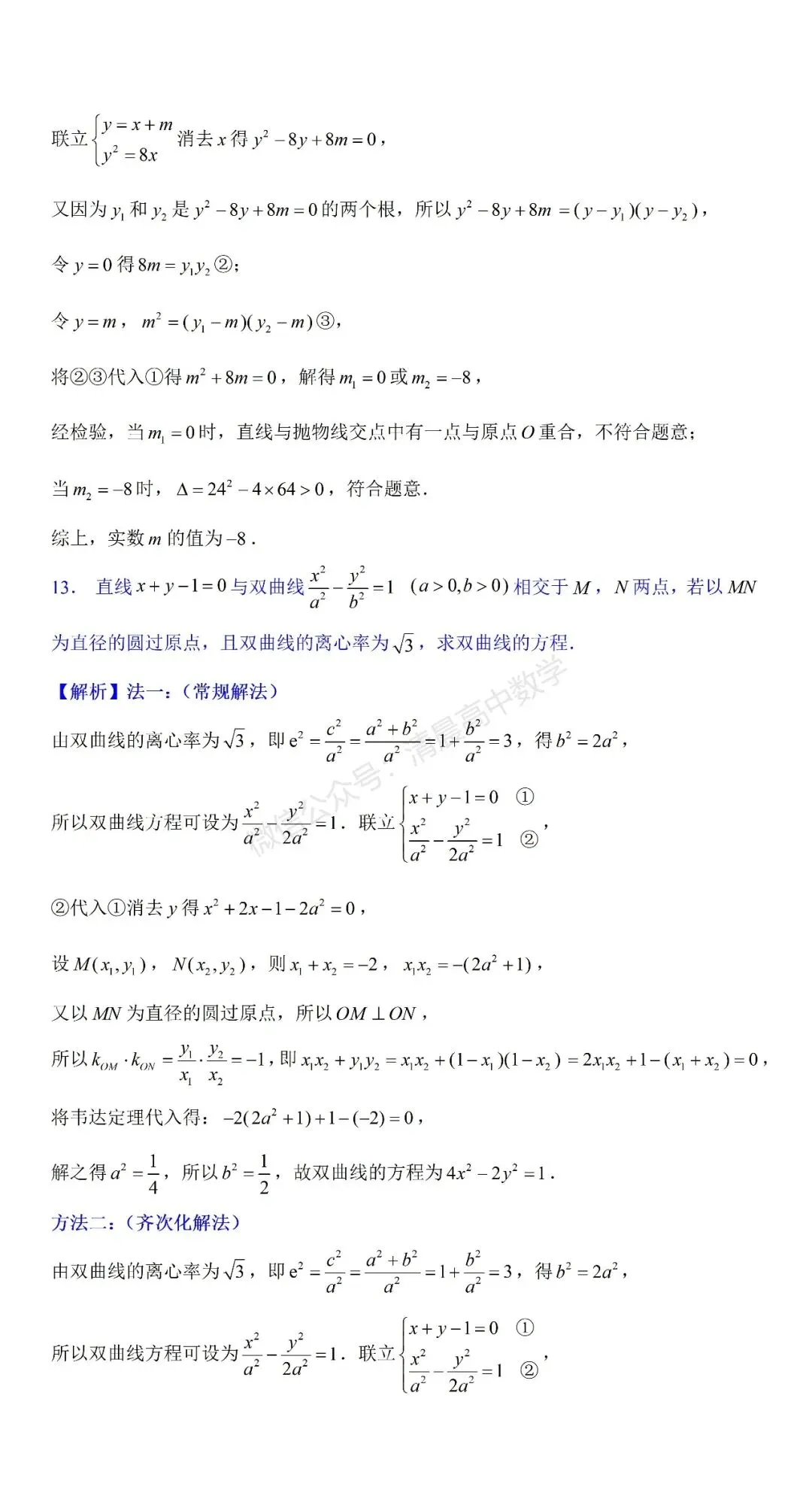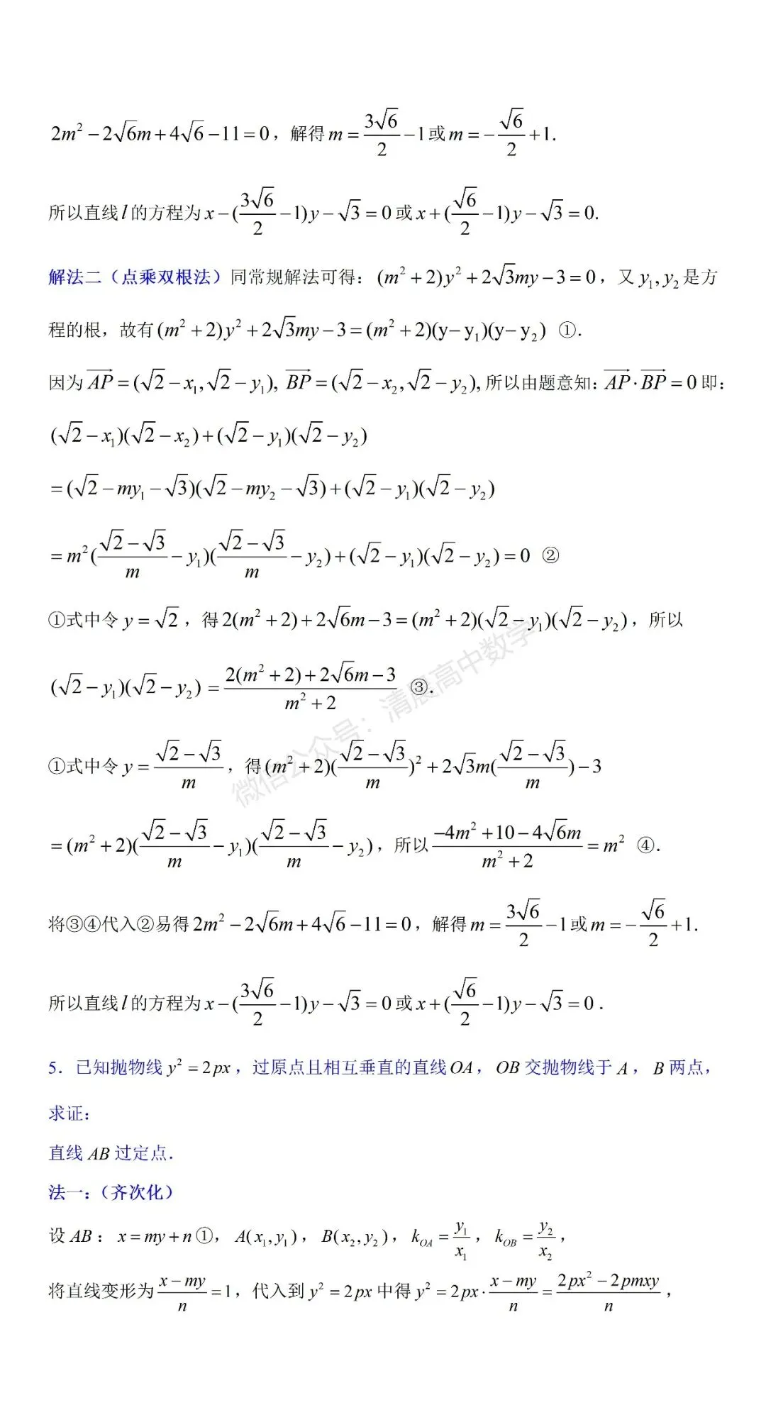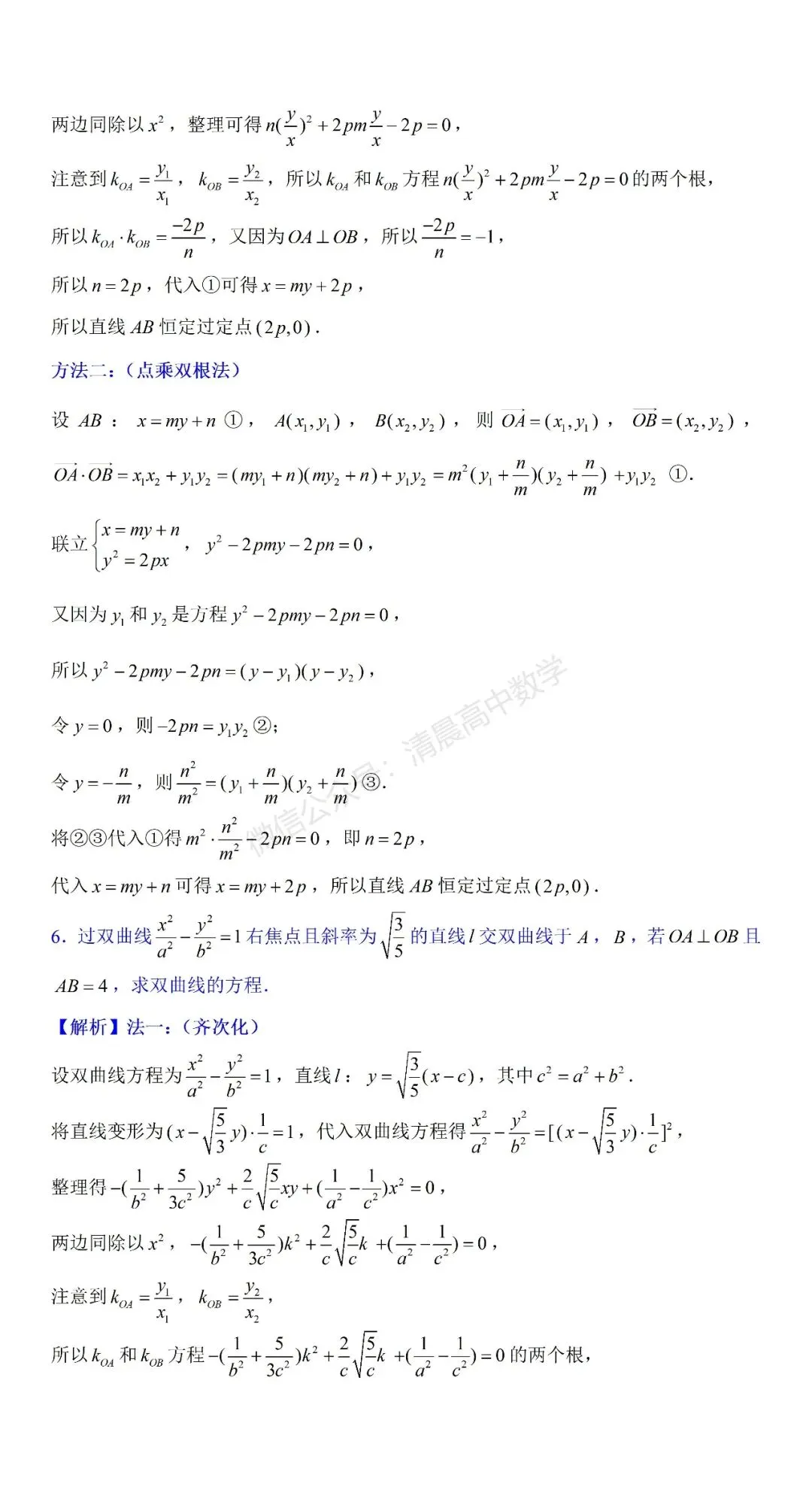 昨天介绍了关于点乘双根法圆锥曲线点乘双根法解题模板
