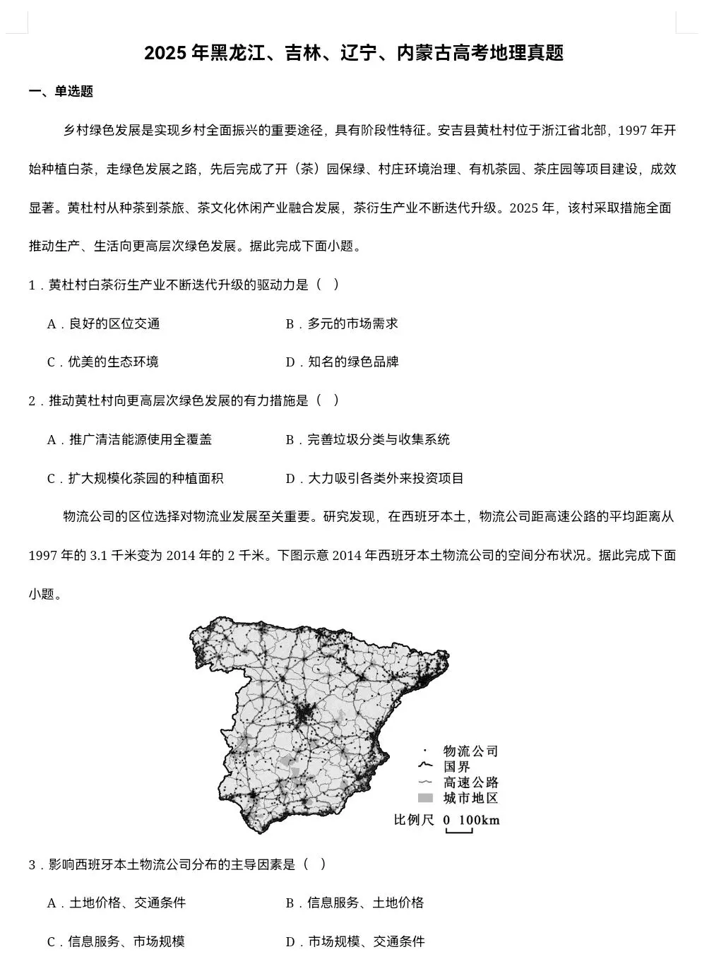 10、辽宁、吉林、黑龙江、内蒙古2025年普通高中学业水平选择性考试