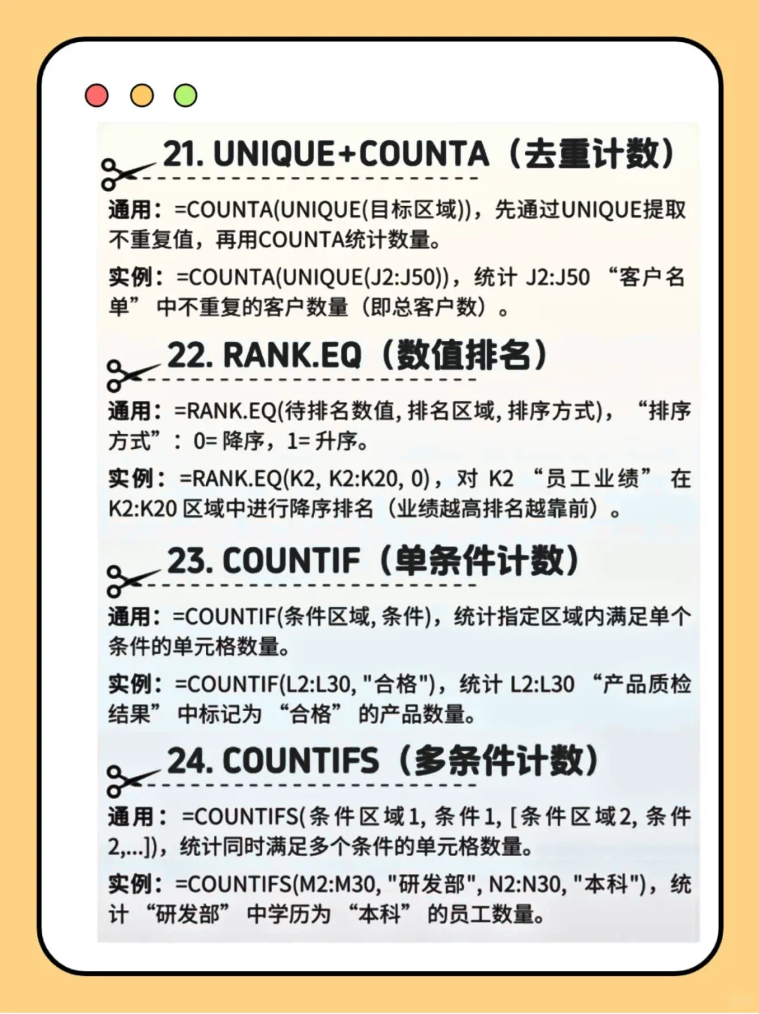 这份为你精心整理的Excel逆袭指南,浓缩了24个最高频的函数公式,像一份现成的“代码手册”,工作学习时随时查阅套用,效率直接开挂!