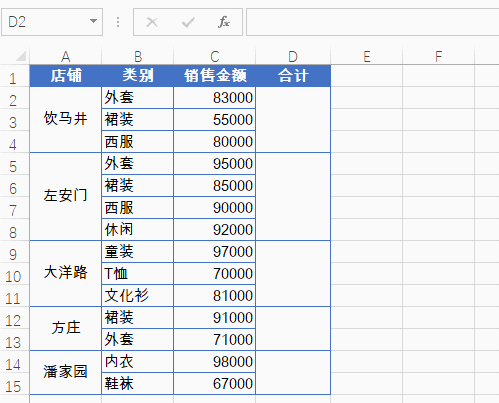如下图,要统计每个店铺的人数。