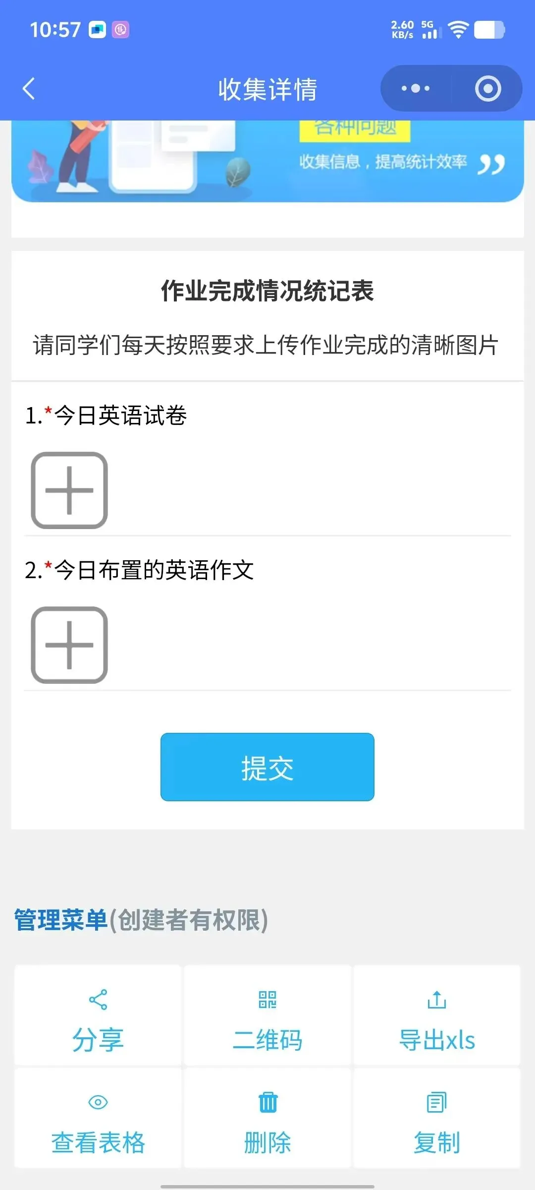 表单创建后,工具栏会生成分享链接和二维码,可直接在微信群里发起登记,成员也可以扫码登记
