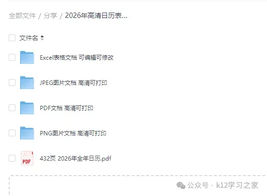 2026年已到来,这里给大家整理了2026年日历表Excel、Word、PDF、JPG、PNG多种格式完整版免费下载。一般是公司人事或者自己有计划学习方在的用得比较多。(含432页2026年全年日历每日每周目标计划)下载方式1:(复制到浏览器或者发送到聊天窗口中打开)