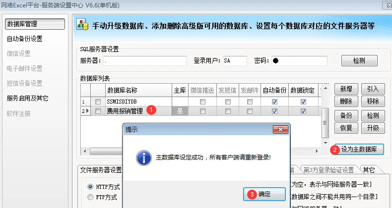 然后把这个文件设置为“主数据库”文件,那么我们登录Myexcel后,就会默认打开这个费用报销管理的数据库文件。
