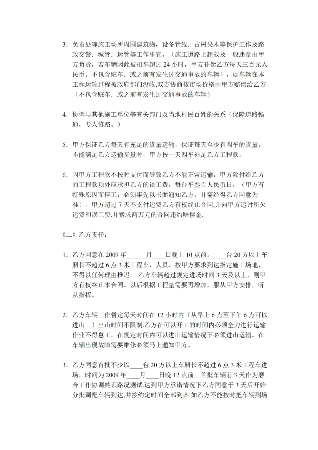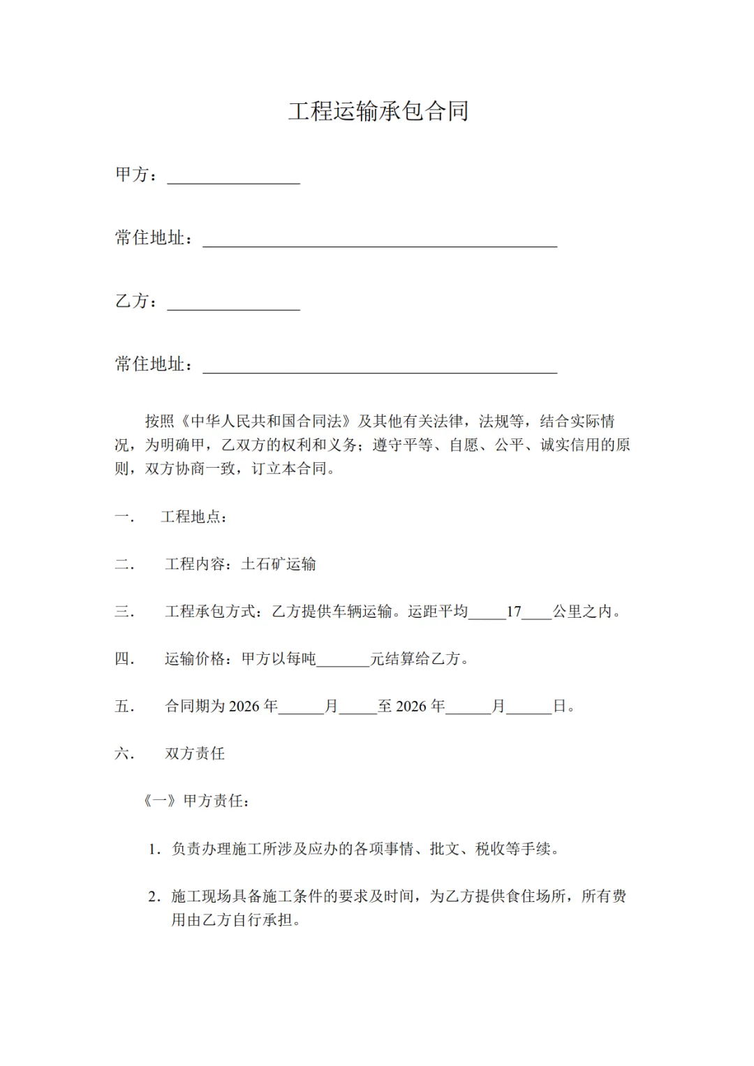 >工程运输承包合同模板,WORD文档电子版,可免费下载打印