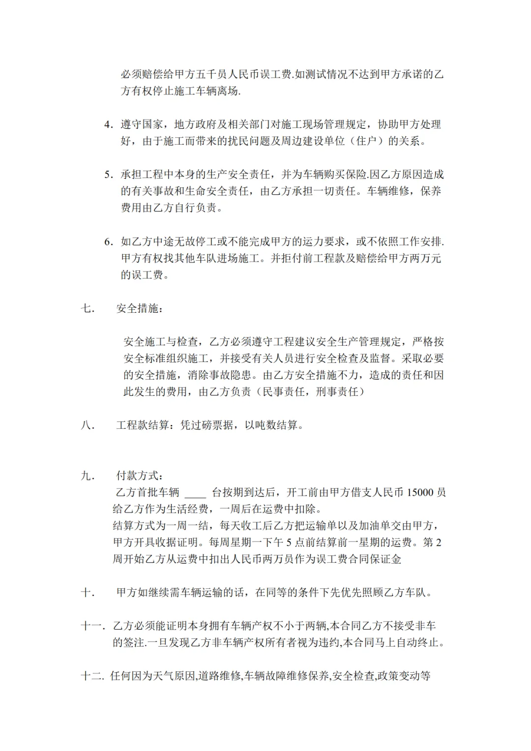 工程运输承包合同模板,WORD文档电子版,可免费下载打印
