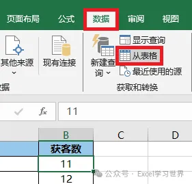 1. 选中数据表的任意单元格 --> 选择菜单栏的“数据”-->“从表格”