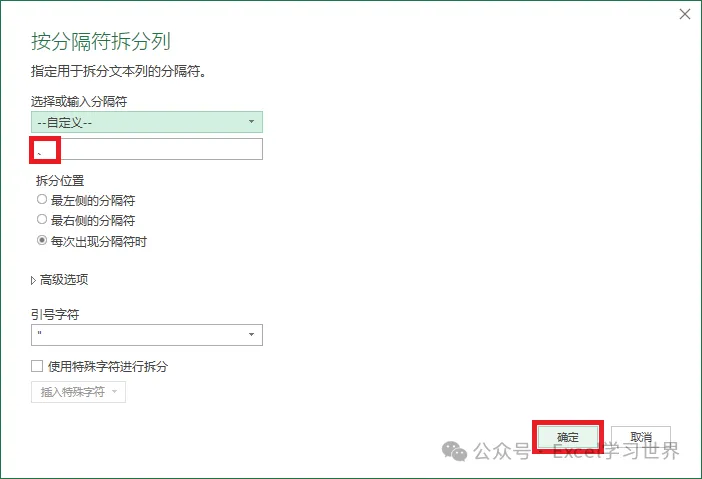 4. 弹出的对话框中已经默认植入了“、”作为分隔符,点击“确定”。