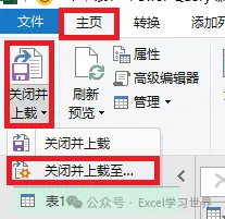 18. 选择菜单栏的“主页”-->“关闭并上载”-->“关闭并上载至”