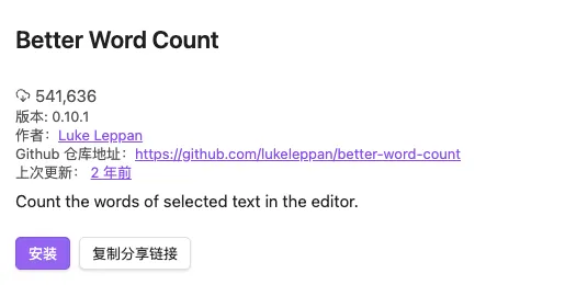 后来我发现了一个插件,干的事情听上去特别无聊:就是把内置的 Word Count 换掉。但用了一段时间,我的感受是——这东西属于那种“你第一次用会嫌它简单,用一周之后离不开”的类型。