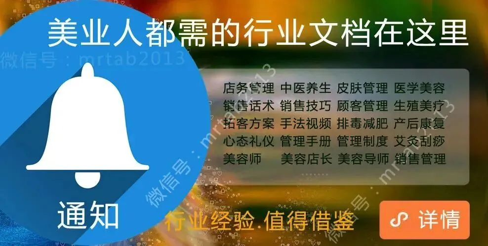 回复“0”查看销售话术!回复“1”查看美容手法视频!回复 "2" 查看美业课件大全!回复 "3" 查看美容院销售技巧回复 "4" 查看养生课件回复 "5" 查看皮肤课件回复 "6" 查看美容院店务管理