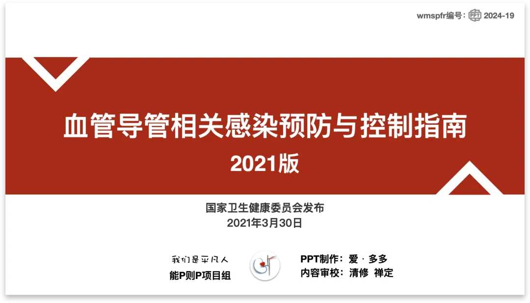 【PPT】血管导管相关感染预防与控制指南(2021年版)
