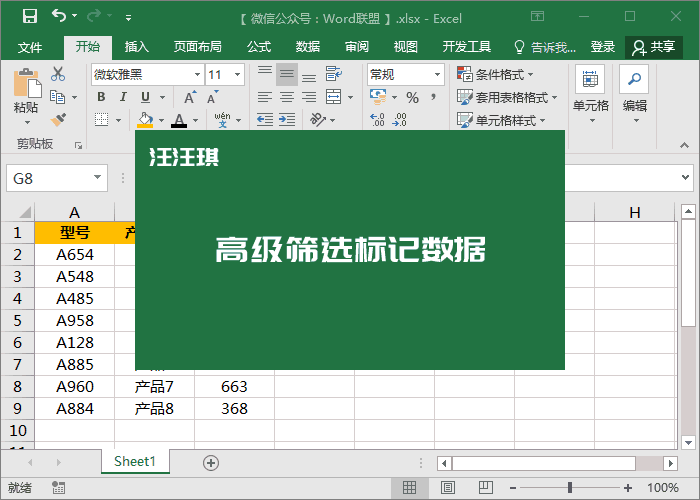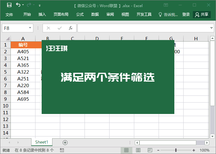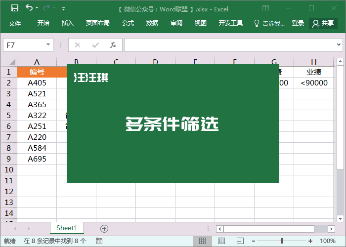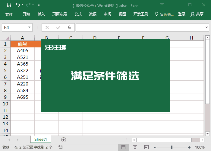 然后,点开「数据」-「排序和筛选」-「高级筛选」,选择列表区域,然后将“条件区域”选择“F3:F4”单元格,确定即可。