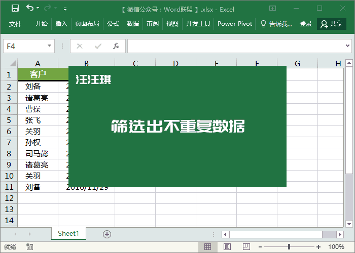 如果你的Excel中有大量的重复数据,那么,我们可以利用高级筛选功能,帮助我们快速完成去重工作。