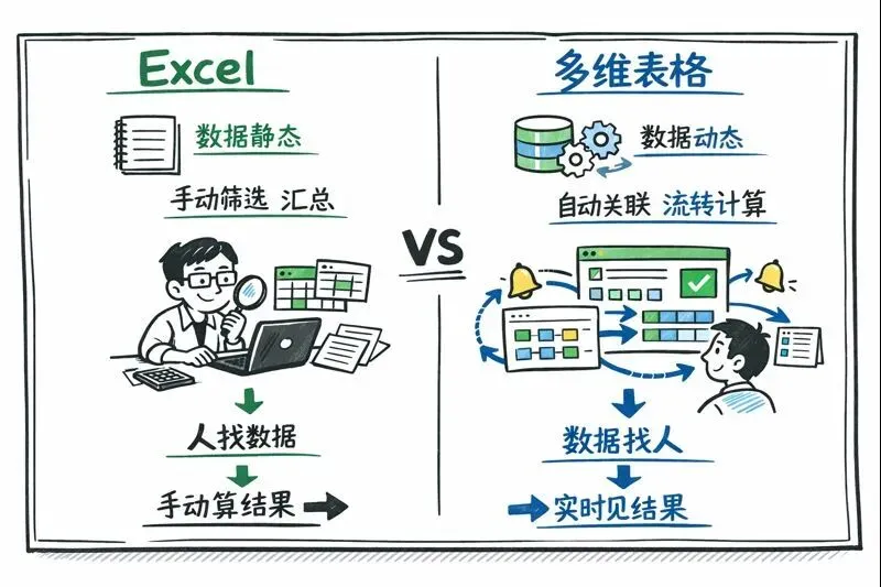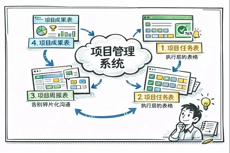 任务执行人 | 双向关联 | 从"项目成员表"中选择。双向关联的好处:你在成员表里能看到一个人身上背的所有任务。 |