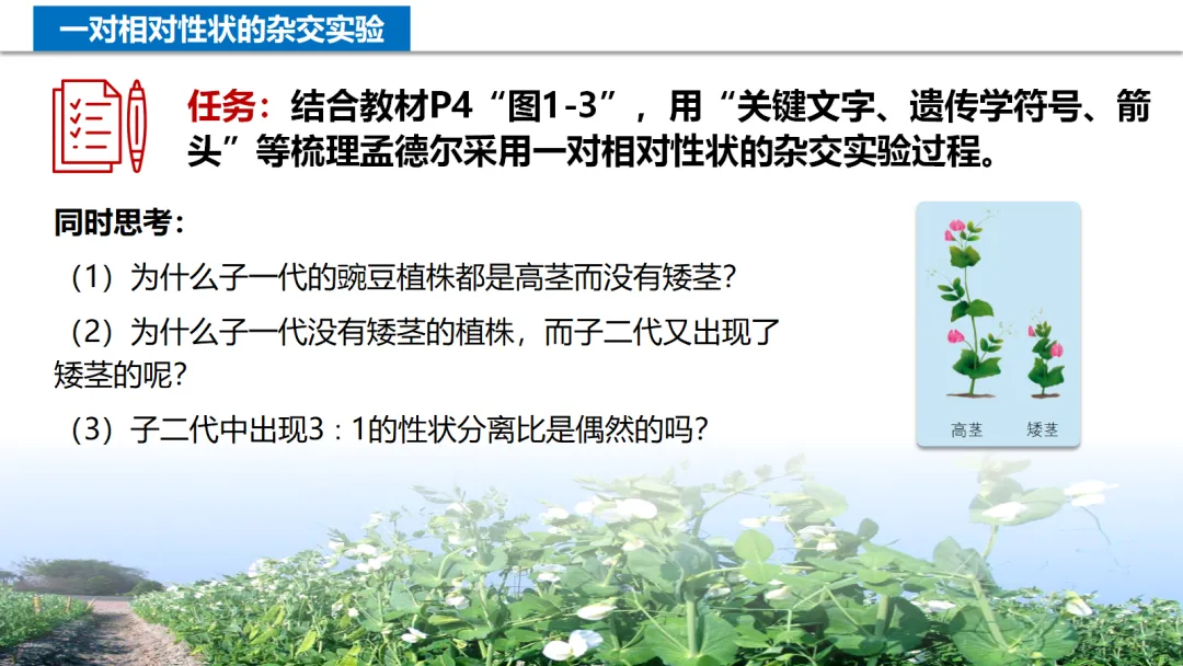 【PPT课件】高中生物学必修2:§1.1 孟德尔的豌豆杂交实验(一) | 匹配教师教学用书上的教学案例